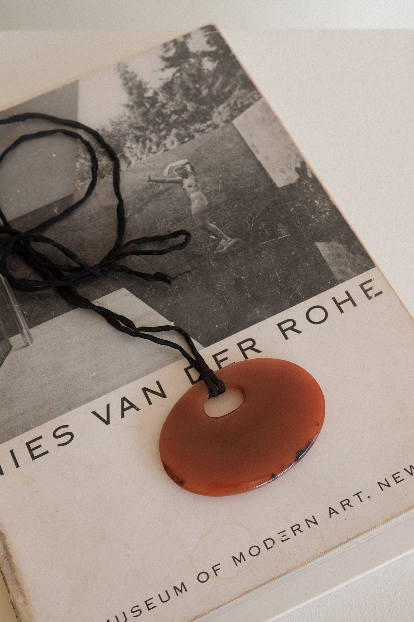 Large agate pendant on black hand-sewn raw silk cord.