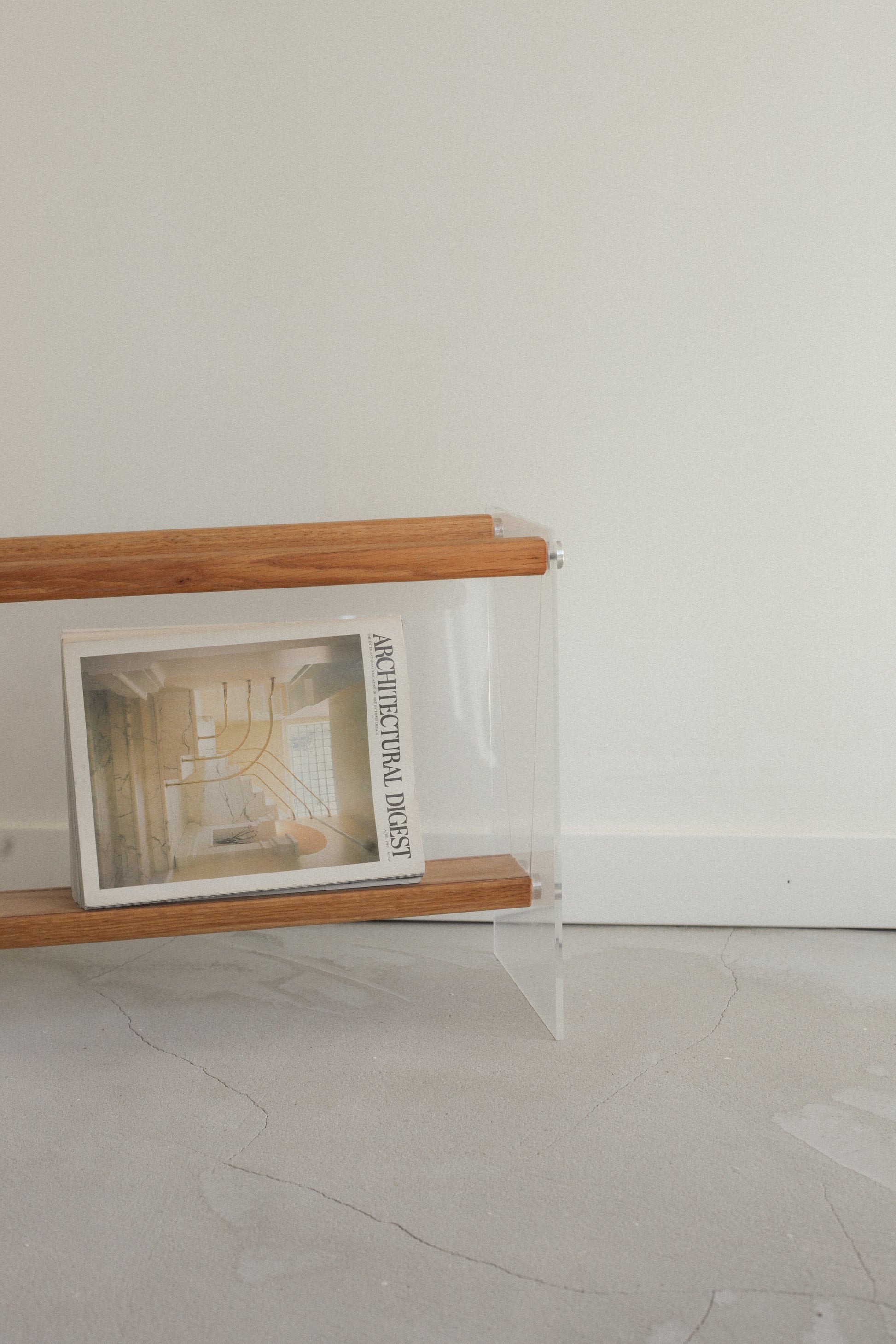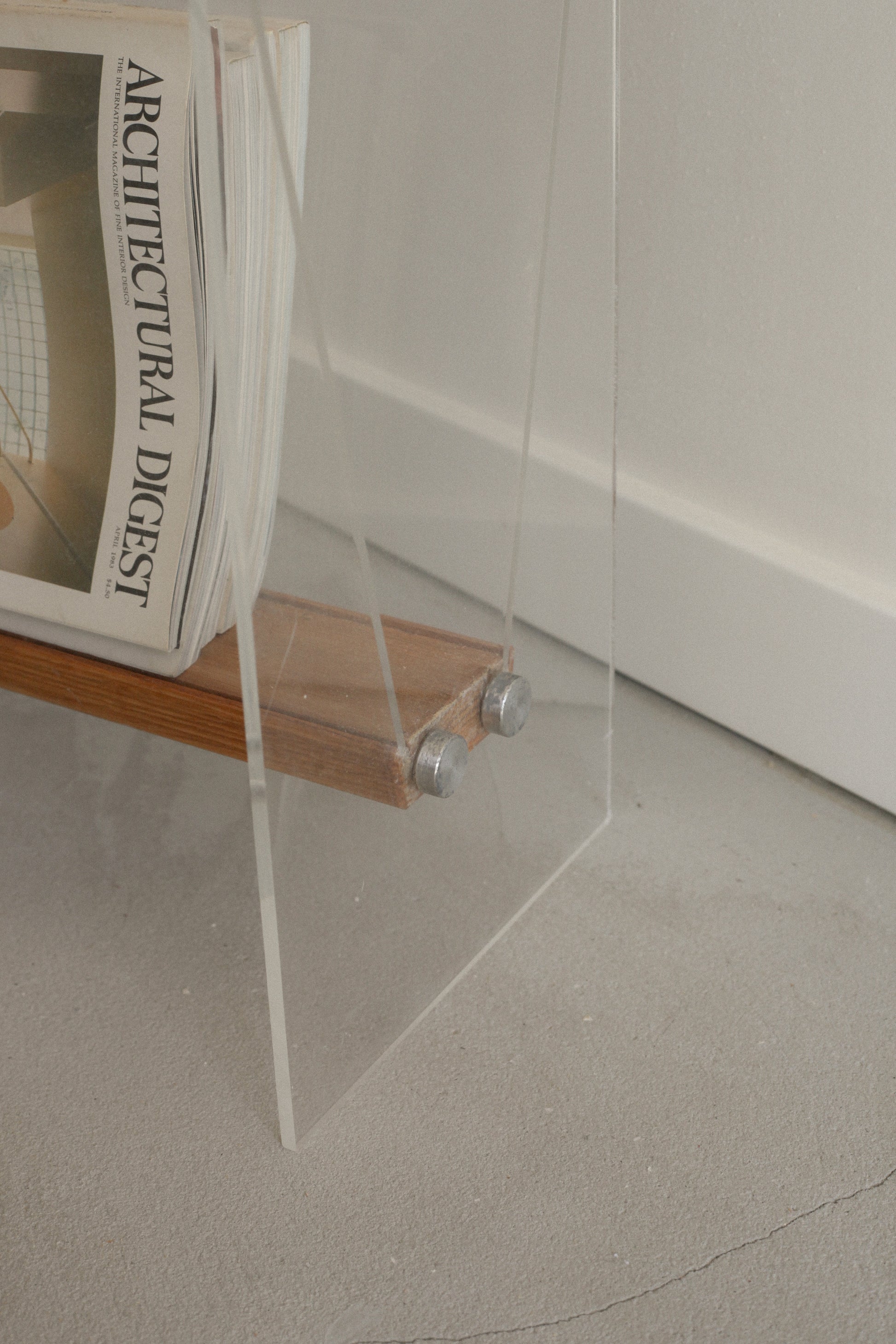 Braeside Studios Lucite & Oak Magazine Rack